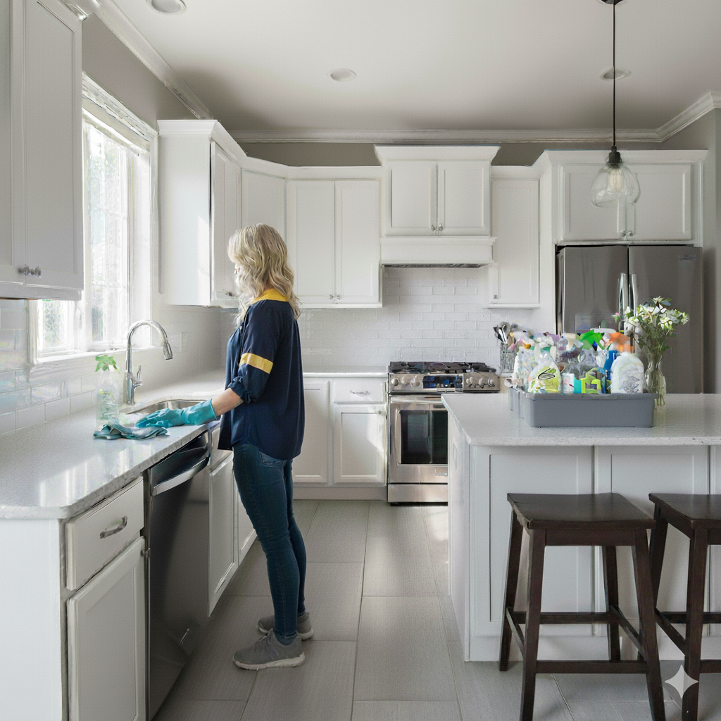 Sink & Counters: Cleaning the sink, faucet, and all countertops.